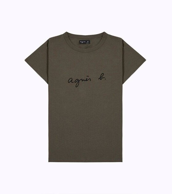 Spring and summer new agnes b cursive PALEESIJA letters pure cotton short-sleeved T-shirt dark blue women's clothing
